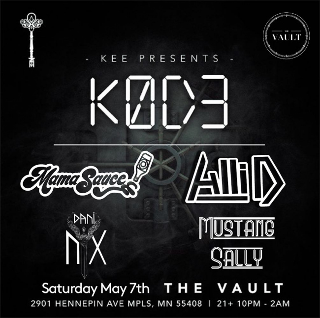 K0D3 Sat, May 7 2022, 10pm - Sun, May 8 2022, 2am Promoter Kee Venue The Vault Genre(s) House Deep House Funk