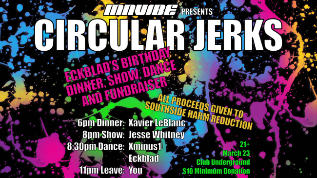 Circular Jerks: Eckblad's Birthday and Fundraiser Sat, Mar 23 2024, 6 - 11pm Promoter mnVibe Venue Club Underground Genre(s) Jazz IDM Techno Electro Breaks Bass